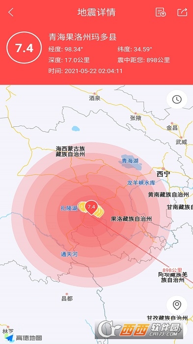 7、地震分享:地震讯息可以一键分享图片至微信、朋友圈、微博、QQ、手机好友等,好友通过查看图片、或扫码二维码可以查看地震信息。