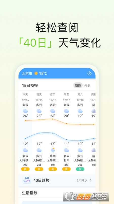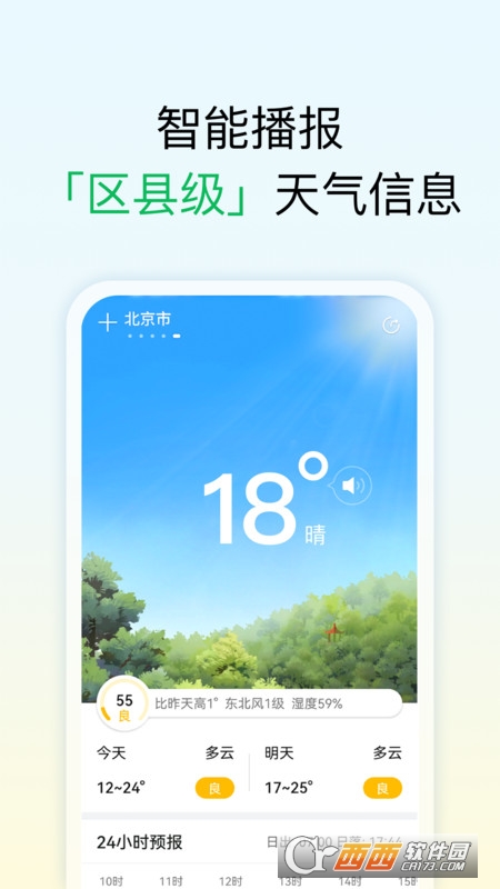 24小时天气预报:精简页面,当日天气趋势随心查阅;
