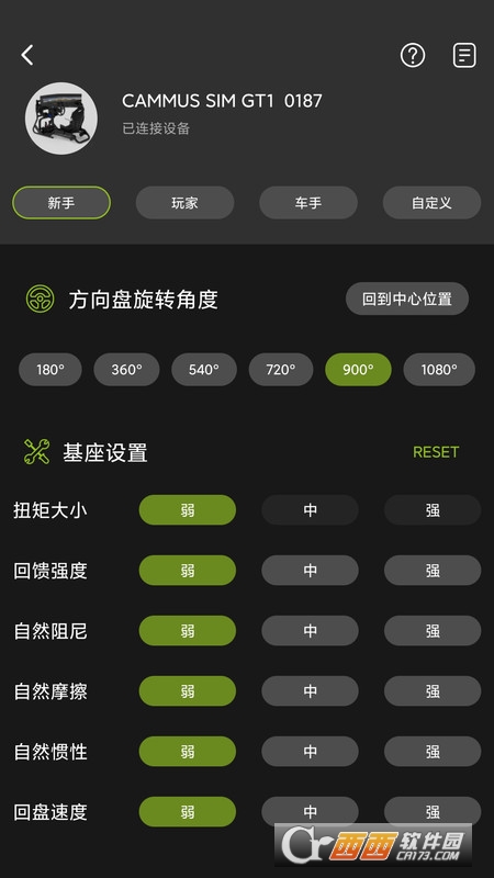 CAMMUS App是用来控制和调试CAMMUS生产的赛车模拟器的应用,激活绑定设备后,可以通过蓝牙搜索和连接设备,,连接后可以调试赛车模拟器的各种参数,如设置转向角度等,还能保存设置的参数,再次进入应用后,设备可以快速写入已保存的参数配置