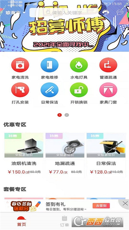 闪速服务用户是一款专业的家电维修和清洗一体化软件,使用方法简单,在这里进行了优惠活动、套餐专区、家电清洗、家电维修、水电灯具和管道疏通等分类,汇集了多方面的家居服务,帮助用户使用家用电器干净又安全,鳄斗163手游网使用吧!