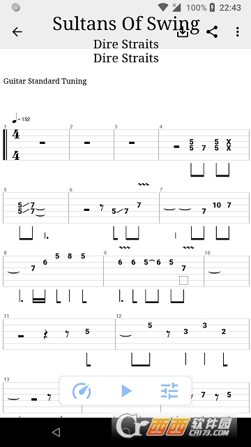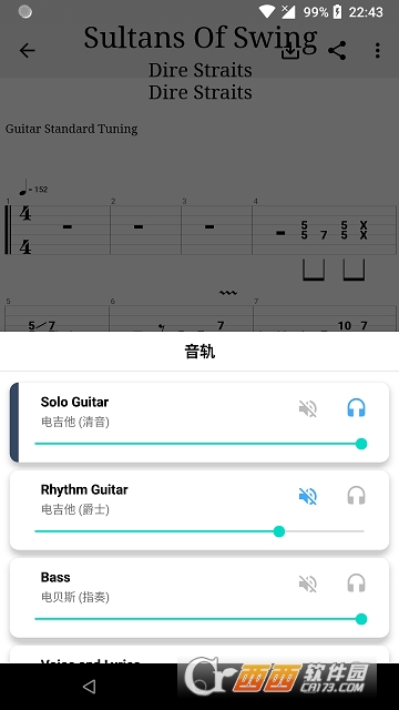 * 支持 Guitar Pro 乐谱的播放试听、速度调整、轨道音量调整。