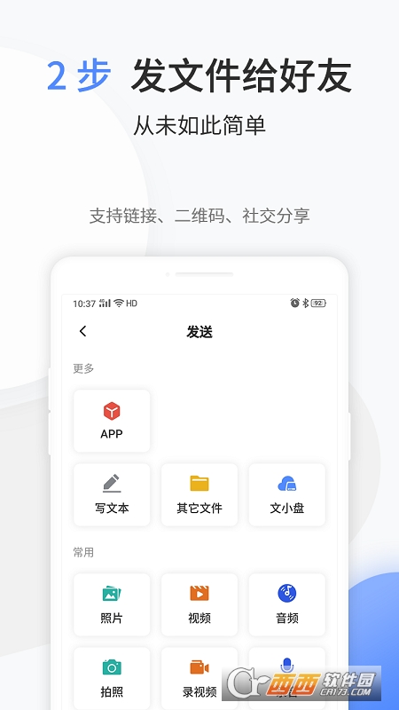 使用文叔叔,只需要 “选择文件”、“点击发送” 简单的两步,即可成功将文件传给你的朋友。