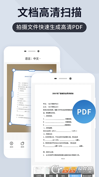 * 支持高清扫描单张文件、多张文件或书籍,快速生成PDF扫描件,扫描件可调整色彩、亮度等