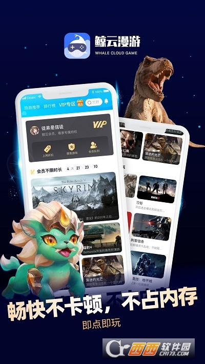 鲸云漫游无限时间免费版是一款非常不错的云游戏平台,里面有着海量的游戏,并且让玩家们用手机就能直接云端畅玩,体验各种端游感觉,并且不卡顿,给你流畅的游戏过程,喜欢的朋友们可以来鳄斗163手游网鲸云漫游无限时间免费版进行使用.