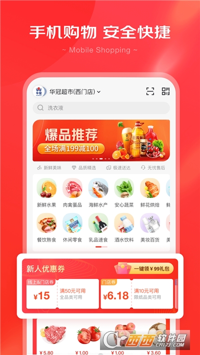 1、精选本地优质商超,新鲜果蔬,粮油调味,休闲零售,肉禽蛋品...品类齐全;