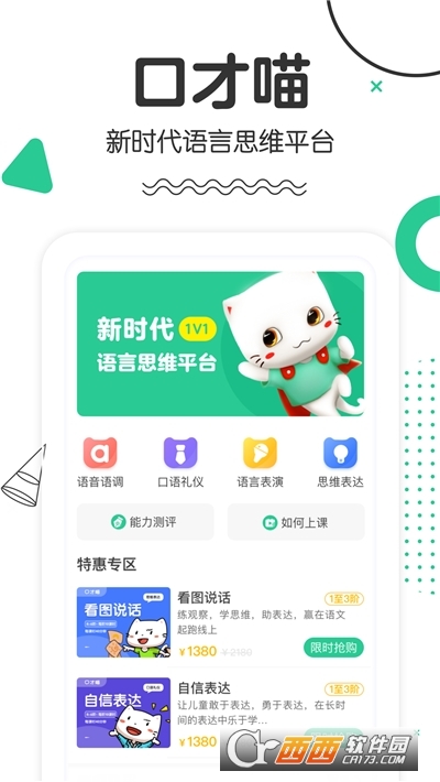 口才喵是一款专业的口才语言学习平台,专为儿童设计的知识学习软件,在这里汇集了海量知识内容,包含了语音语调、口语礼仪、语言表演和思维表达等方面的知识内容,还有特惠专区的课程可以选择学习,支持家长旁听辅导孩子学习,需要的伙伴,鳄斗163手游网使用吧!