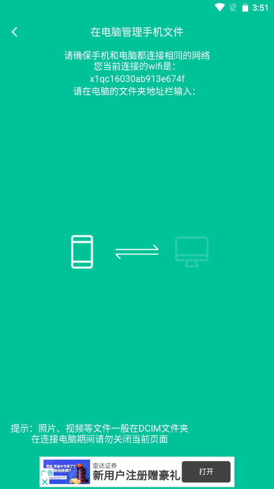 3、如果需要传输到电脑的话,我们就需要在电脑的文件夹里面输入我们的特定的号码,这样的话就可以一对一专项传输了;