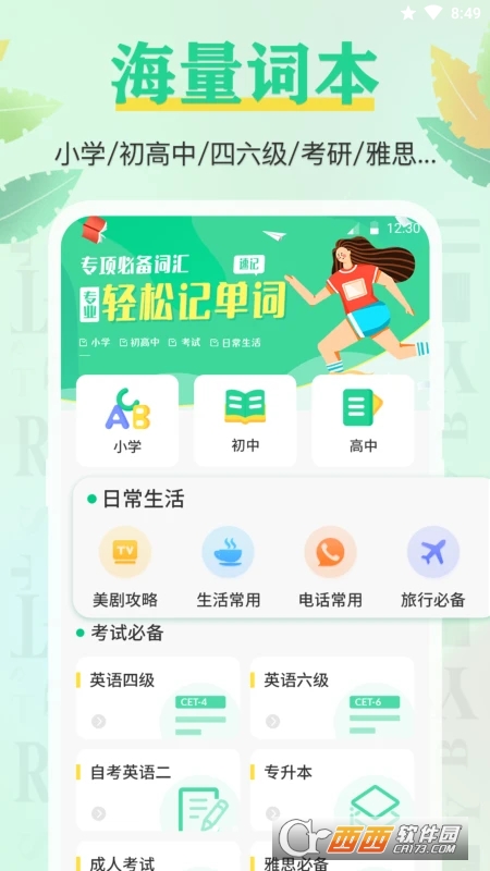 我们在海量词库中经过大数据的处理,结合历年考试的规律,为您筛选了大学四六级、专四专八、考研雅思托福、自考英语二和专升本英语等考试的经典助考词汇,让您轻松应对考试,此外还为您准备了外出旅行、生活常用和美剧攻略相关的词汇学习,帮助您提升生活口语,满足您的日常英语交流需要。