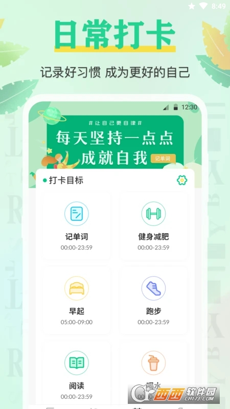 建立记单词目标,可每日打卡,您一点一滴的努力和坚持我们都用心为您记录着,此外,您还可以针对喝水、跑步、阅读、早起等等进行每日打卡,我们一起来养成好习惯,见证您的蜕变。