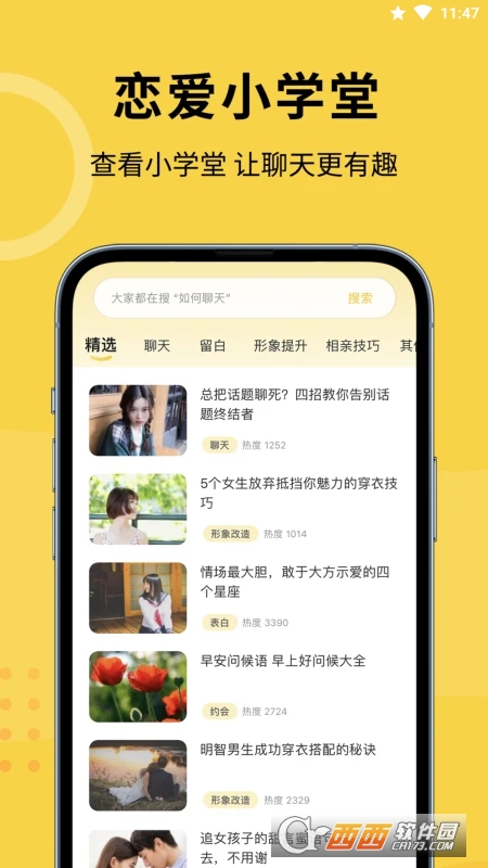 聊小帮是一款辅助用户来完成聊天的软件,这款聊天的工具上面有着很多的技巧的内容,你可以通过这些技巧内容来进行相关的学习和训练,让你能够轻松的学习到一些知识性的内容,让你能够以更为良好的方式来处理两性当中的关系,喜欢的话就快来鳄斗163手游网这款聊小帮!