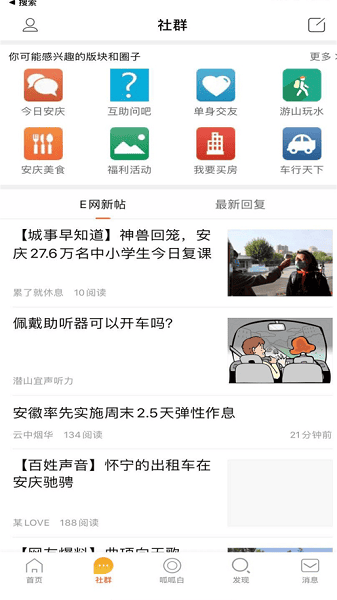 1、寻觅身边大小事,实时分享你的所见所闻所感,一键发布在安庆e网app。