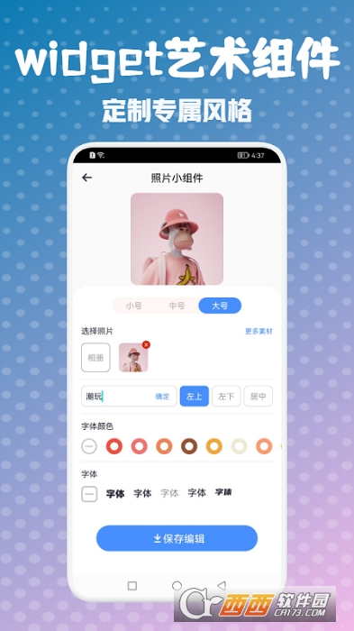 widget艺术小组件是一款精美的小组件自定义工具,帮助你个性潮流的定制桌面风格。