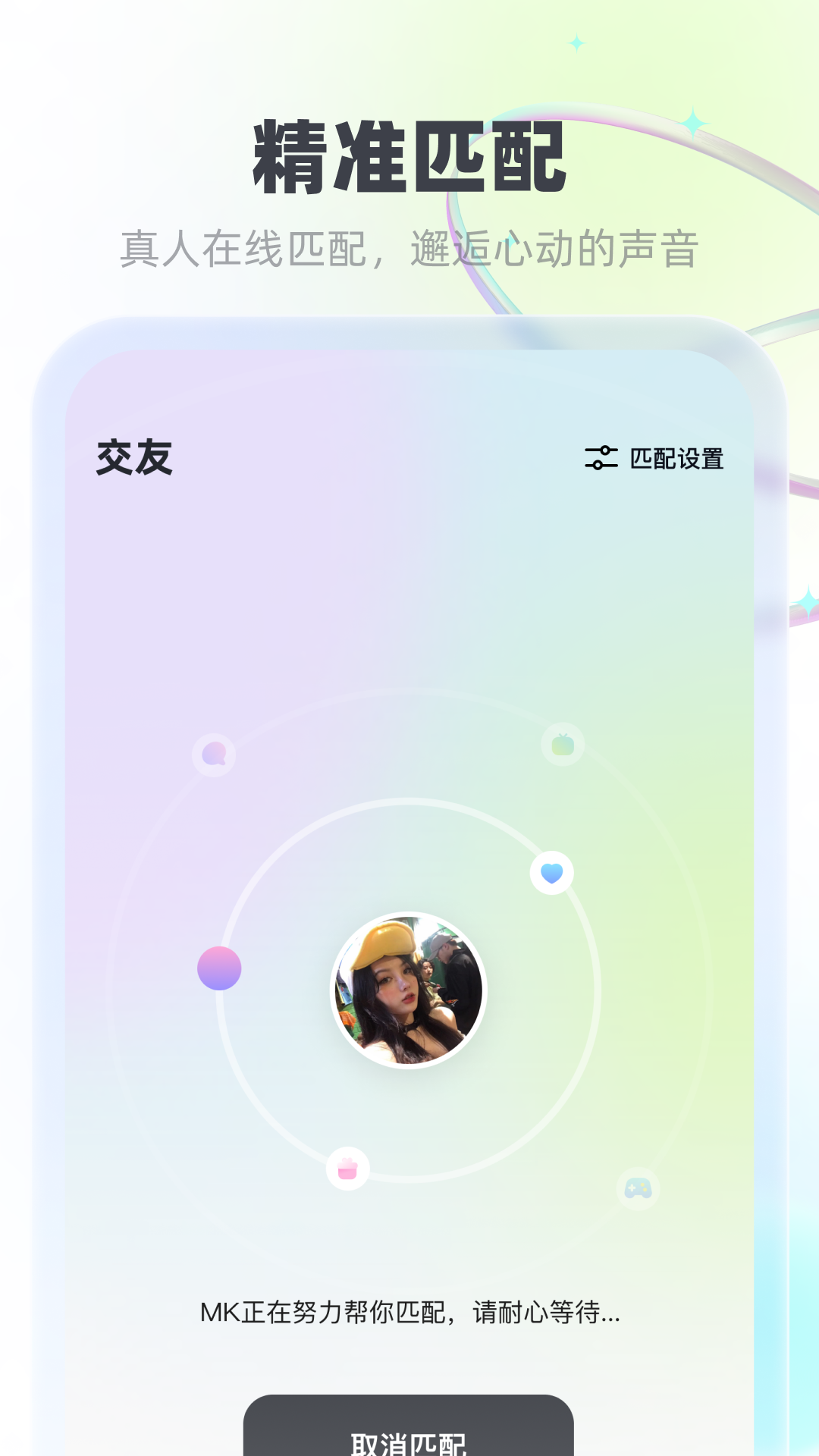 1、通过声音匹配你中意的声音好友,用声音遇见心动的Ta。