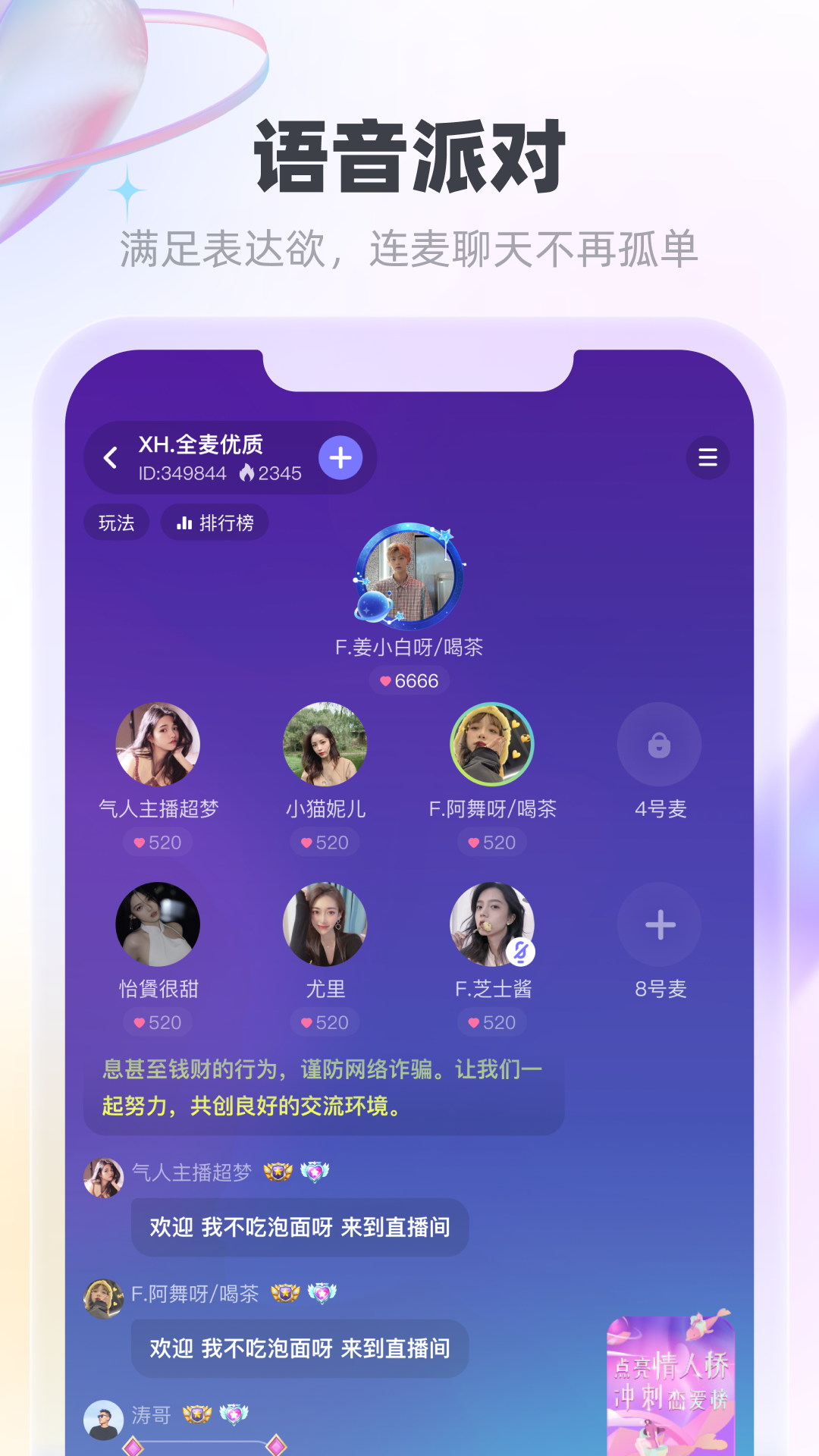 2、【声音派对】支持开通私享房间,与同伴连麦聊天,声音派对狂欢,让你不再孤单~