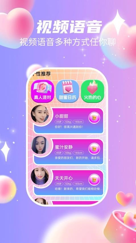 线上就可以让大家体验到非常多有趣的交友互动玩法,随时都可以让大家在线交友恋爱,找到合适的交友异性会很简单哦,可以放心在线交友聊天。