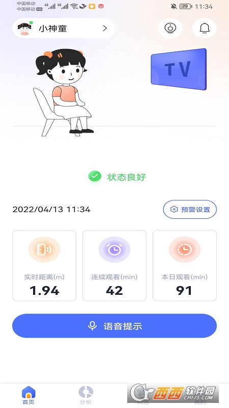 距离监测--儿童距电视距离的实时监测!