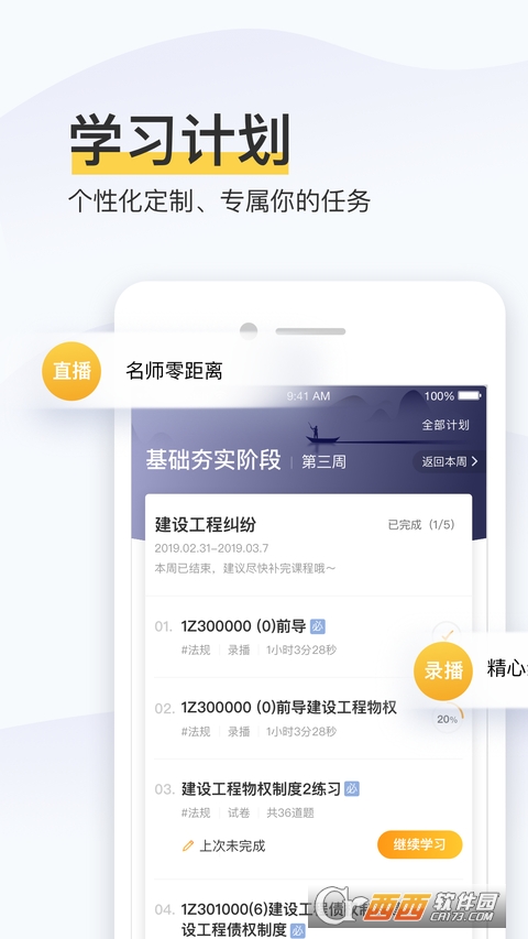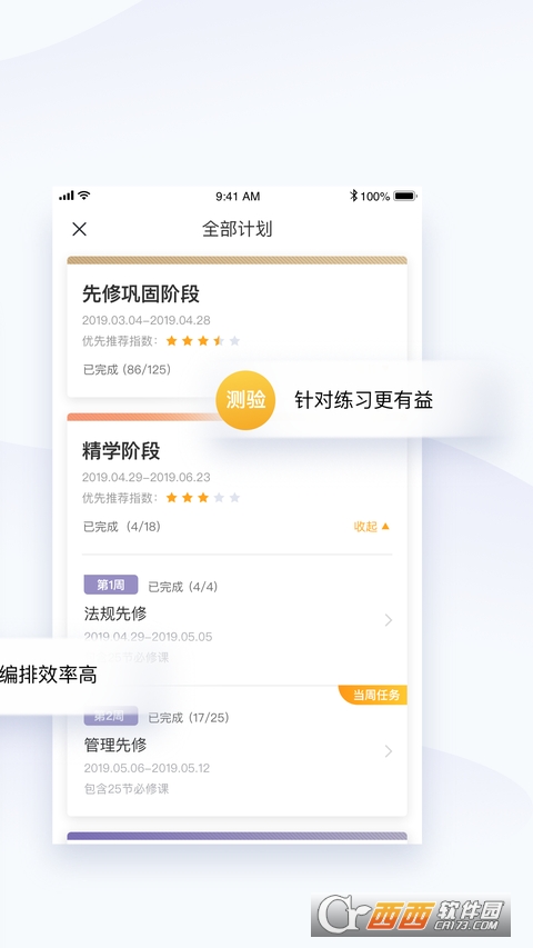 2、量身定制的学习计划:根据自身情况量身定制专属于你的学习计划,将学习计划以任务的形式呈现,帮你充分利用碎片化时间,分分钟提高你的学习效率。祝你高效拿下考试。