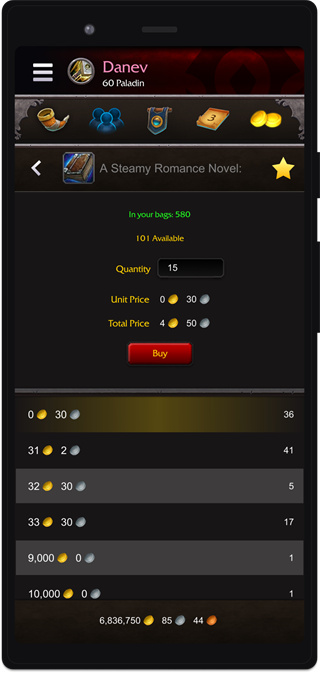 魔兽世界助手app是一款专门为魔兽世界所打造的游戏辅助应用软件,软件为用户提供了很多的道具以及物品,用户可以购买到自己喜欢的物品,同时可以将自己闲置的物品进行售卖,而且在这里用户可以实时了解到游戏的资讯,不再错过任何一条相关信息,满足不同用户的不同需求。