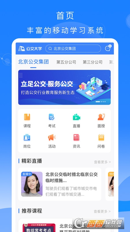 公交大学堂app是一款专为公交人打造的线上学习平台,里面有着超多优质的课程内容,并且还有强大的专业教师团队在线直播讲解,帮助用户们更好的去掌握,需要的用户们可以来鳄斗163手游网公交大学堂app进行使用.