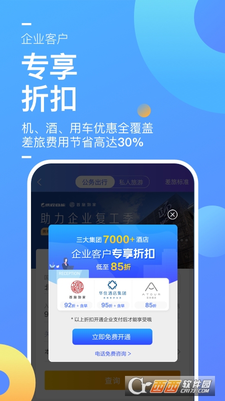 华住、如家、亚朵、维亚纳等酒店集团享商旅含早尊享价,更有商旅客户专享特价酒店。