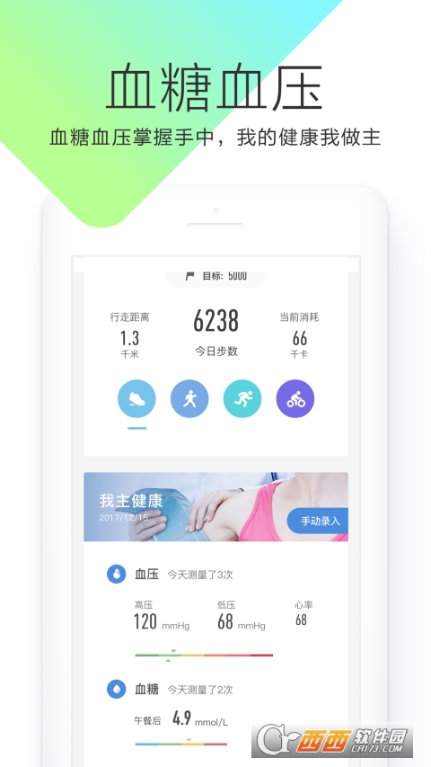 可显示历史曲线、记录饮食与运动数据、上传数据到云端等。