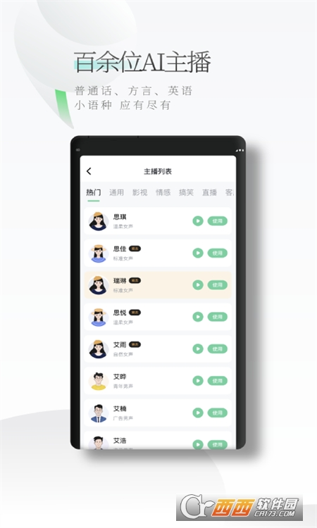 我们这款工具内置了百位主播,并且还在不断更新中,无论是影视解说文案转音频场景,还是各类方言搞笑段子,温柔情感号配音,又或是新闻播报,可爱童声,甚至各国小语种均可完成,实现媲美人生的自然效果。专业团队为您护航,值得各位配音达人下载APP使用!!!