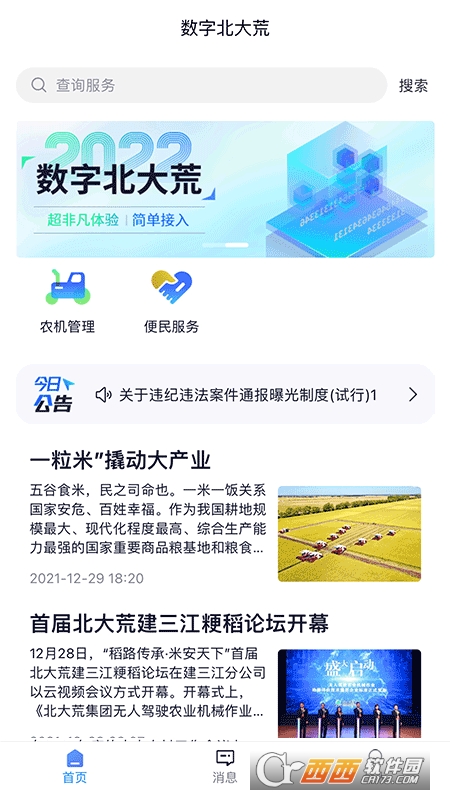 数字北大荒是一款专业的农业服务平台,在这里开启智慧农业,随时管理农机,还有多种便民服务,实时查看公告通知信息,汇集了多种查询功能,主要围绕了公积金来查询,随时了解相关农业行业新闻,还有信息收集服务,需要的伙伴,鳄斗163手游网使用吧!