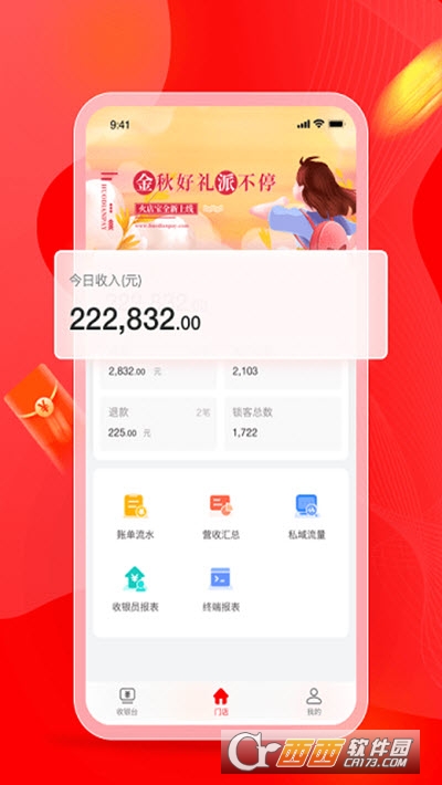 火店宝APP是一款以门店收银管理为主,为门店商户开启全新SaaS数字化服务平台,BOSS可随时随地查看营收汇总数据、收银员收款报表、终端收款报表、连锁报表、私域锁客、流量收益等。