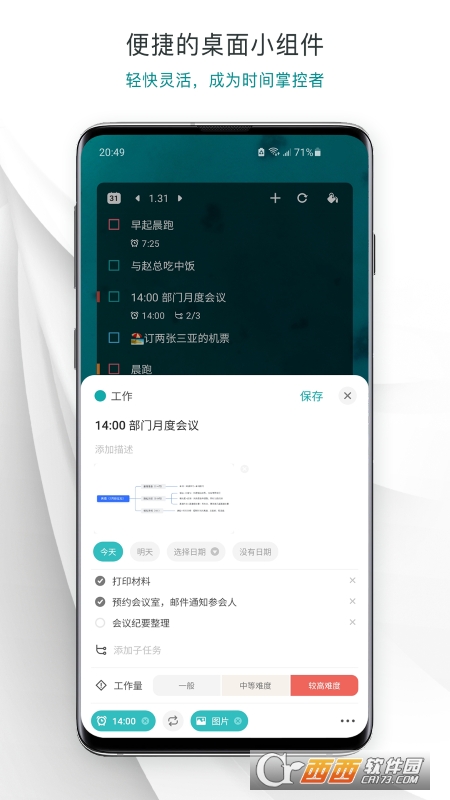 一款基于艾维利时间管理法打造的TODO待办应用,能够帮您高效规划和管理时间,随时随地的记录并同步生活和工作中的所有事务。除此之外,我们还提供了番茄钟和灵感便贴等多种效率功能,配合系统级的事件提醒推送,可以灵巧、专业、清晰、高效的管理您的每一天,让您的时间事半功倍。