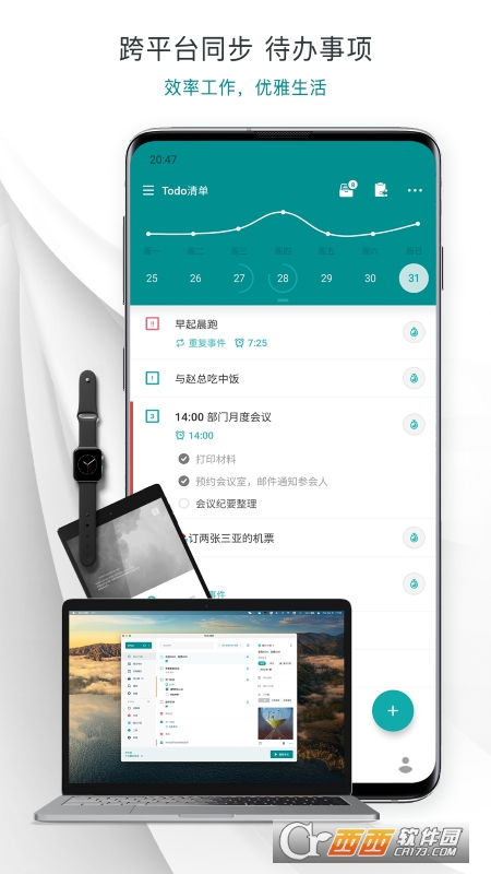 Todo清单采用了全球最受欢迎的色彩――马尔斯绿,配合优雅高效的交互设计,像素级的打磨,打造了美观易用的高效应用。