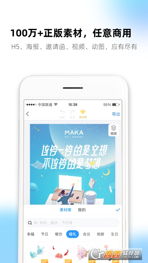 MAKA是一款简单、强大的创意设计和营销推广工具,5万+原创设计师,海量主题模版实时更新,帮助企业和个人用户方便快捷地完成专业级别的H5创作与海报设计。