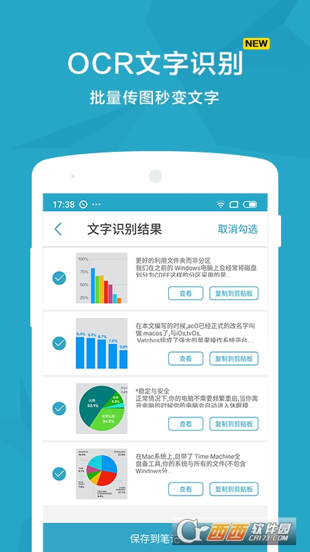 * 扫描各种文件、图片、书籍等提取想要的文字;
