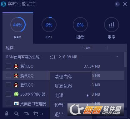 可实时监控电脑的RAM、CPU、磁盘、量度信息