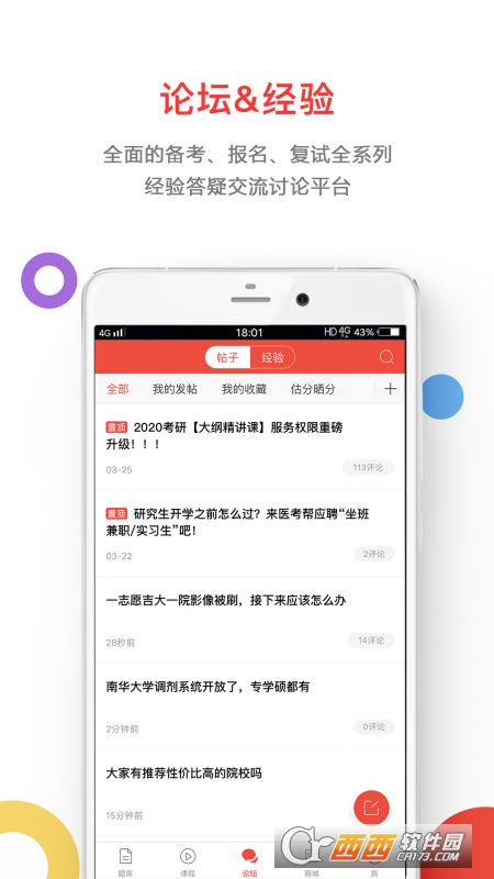 真题题库随时刷、强大名师课程即时看、更有高分经验作者随你聊,真题+视频+经验+互动+答疑五位一体,为考研医学生提供全程、全方面的考研指导。