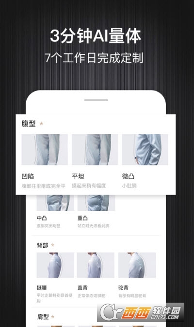 *用户通过软件可以进行AI在线量体,快速定制出自己所需要的商品。