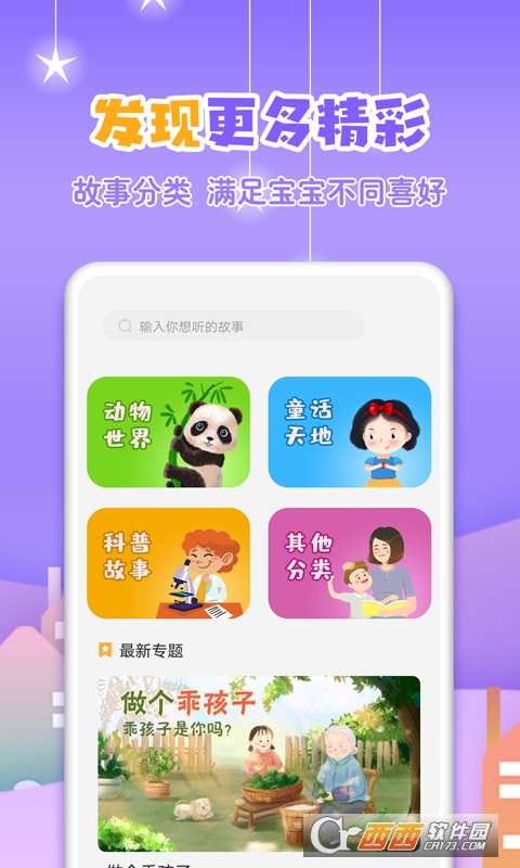 1、寓言故事大全里不仅仅有寓言故事,里面内容颇多,分类也精准:寓言故事、冒险故事、经典童话故事、民间故事、成语故事等等。