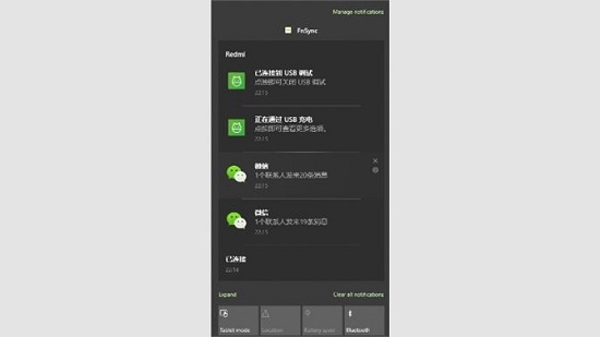 直接将通知同步到win10的右边