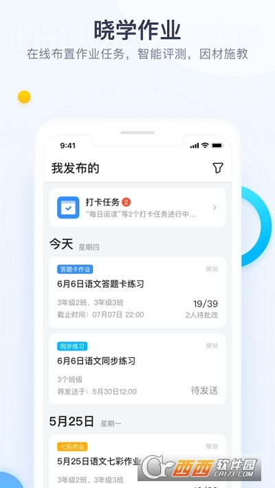 【家校】提供以老师为牵引的多种“家校共育”方法,包括发布作业、通知、问卷等,方便老师随时在移动端查看任务完成情况,并及时给予反馈;