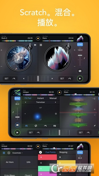 djay 将您的 Android 设备转化为功能齐全的 DJ 系统。Djay 跟您的音乐库无缝集成,可以访问您设备上的所有音乐,以及成百上千万首歌曲。您可以现场演奏并进行音轨混音,也可以启用“自动混音”(Automix) 模式,让 djay 自动创建流畅的混音作品。不管您是专业 DJ,还是纯粹爱玩音乐的新手,djay 都会在 Android 设备上提供用法极其简便但功能极为强大的 DJ 体验。