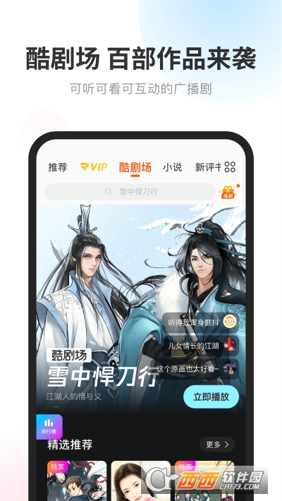 酷我畅听app是一款安装在手机上面的听书软件,现在很多伙伴都喜欢看书但是看久了眼睛就会疲劳,酷我听书app就是释放你的双眼的软件,用户可以在酷我听书app里面搜索自己喜欢的书、相声、音乐,有需要的伙伴不要错过哦!