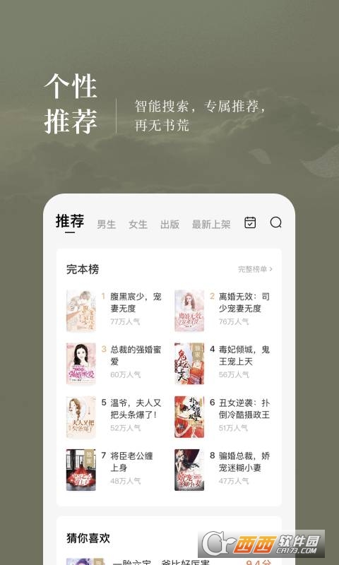 根据你的阅读爱好,个性化推荐,优质书单,书城精细化推荐,总有一款打动你!