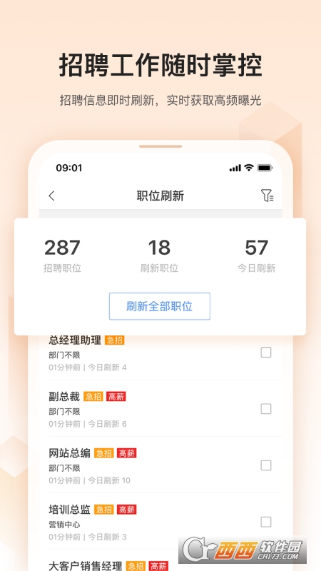 【职位刷新】即时刷新急招职位,实时提升职位竞争力;