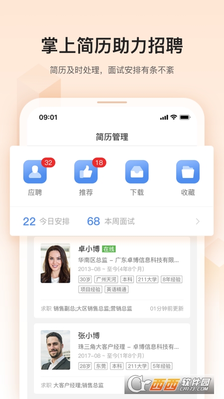 【简历管理】投递和下载的简历随时处理,还可对简历进行相应的评价;