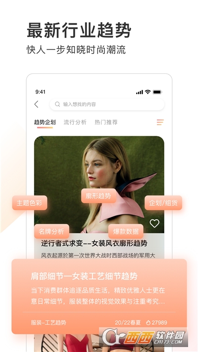 POP趋势是一款专为设计师提供服装、鞋子、箱包、家纺、首饰5大时尚行业最前沿资讯的应用,行业专家为设计师洞察最新研发季节的流行风向,同时借助大数据智能分析,从秀场大片、订货会精选、设计师品牌、全球优质名牌等多个维度精选挑选出最受市场、用户欢迎的海量高清款式图;