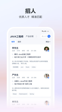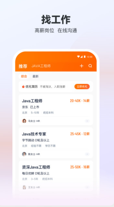 1、进入软件我们都可以看到各种各样的工作信息,海量的工作信息都会自动进行优化,更加轻松地找到不同的工作内容;