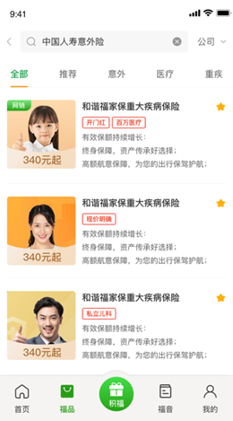 1,福保app是对照与不同类型的居民的保险需求内容来服务客户,所有的保险业务都是品类齐全的,拥有很多不同类型的情况发布,各种类型都可以购买。