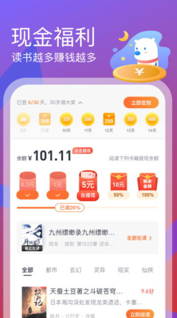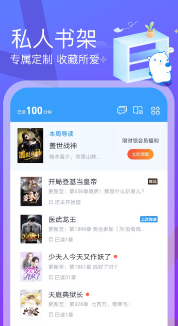 2、每天看书也可以领取到平台的福利,坚持每天看书的话就可以领取到更多的福利大礼包哟,赶紧加入奖励吧;