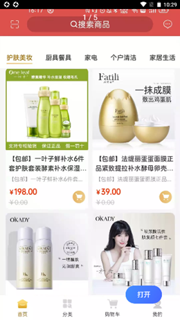 1,聚亿易货app中设计了非常完善的品类购物选择模式,从护肤美妆到厨具餐具还有家电异界个护清洁的商品类型都有,自由的购入商品,体验更加优秀。