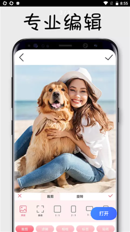 3,当拍摄完成不通过类型的图片之后可以来进行不同模式的专业编辑和修改,自由调整裁剪图片的大小,还可以旋转图片的稳定性,使用更简单。