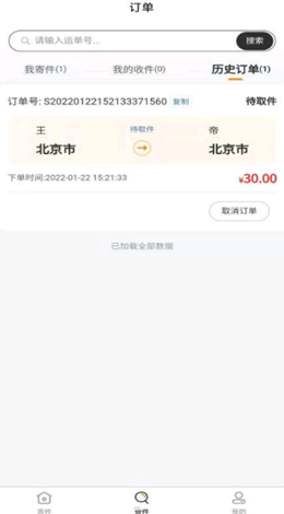 2,收件与寄件都是非常简单的,会有很全面的订单记录内容,历史记录非常清晰,可以查看到具体单号,运输情况一目了然。